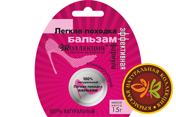 Бальзам Легкая походка Тонизирующий укрепляет кровеносный сосуды, улучшает питание тканей, стимулирует лимфодренаж, устраняет отечность, оказывает противовоспалительное действие, снимает усталость и тяжесть в ногах.