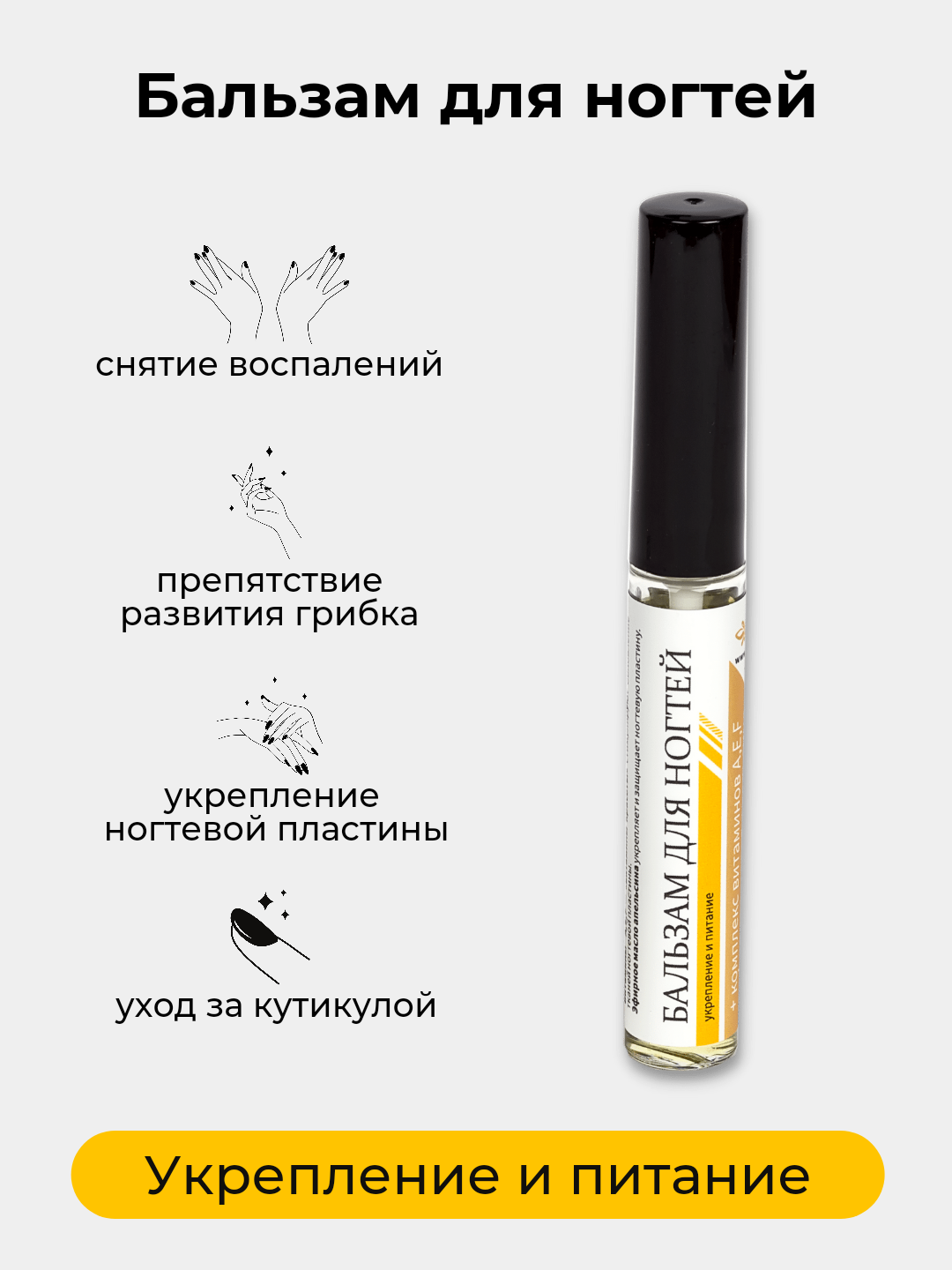 Бальзам для ногтей укрепление и питание с комплексом витаминов A,E,F и эфирным маслом апельсина