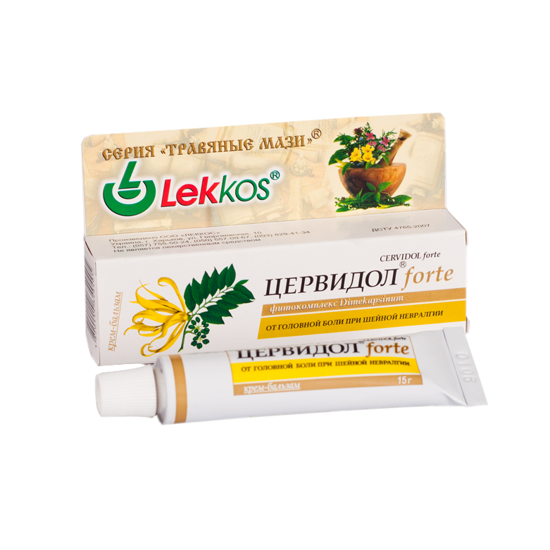 При стойких головных болях, мигрени, болях в шее можно воспользоваться кремом-бальзамом «Цервидол» forte. Это средство на основе фитокомпонентов в сочетании с эфирными маслами и пчелиным воском быстро избавляет от боли.
