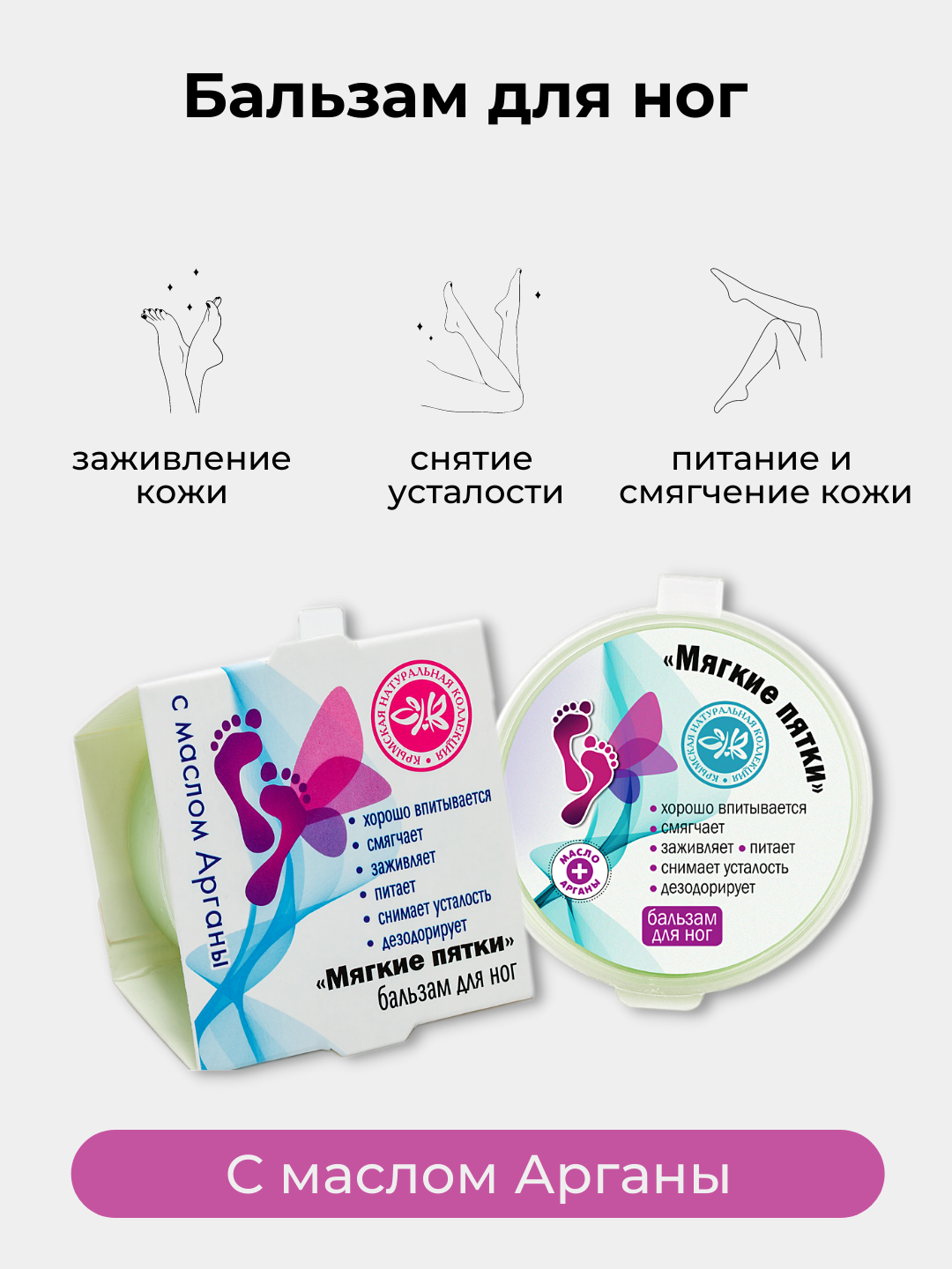 Бальзам для ног Мягкие Пятки смягчает, хорошо впитывается, дезодорирует, питает.