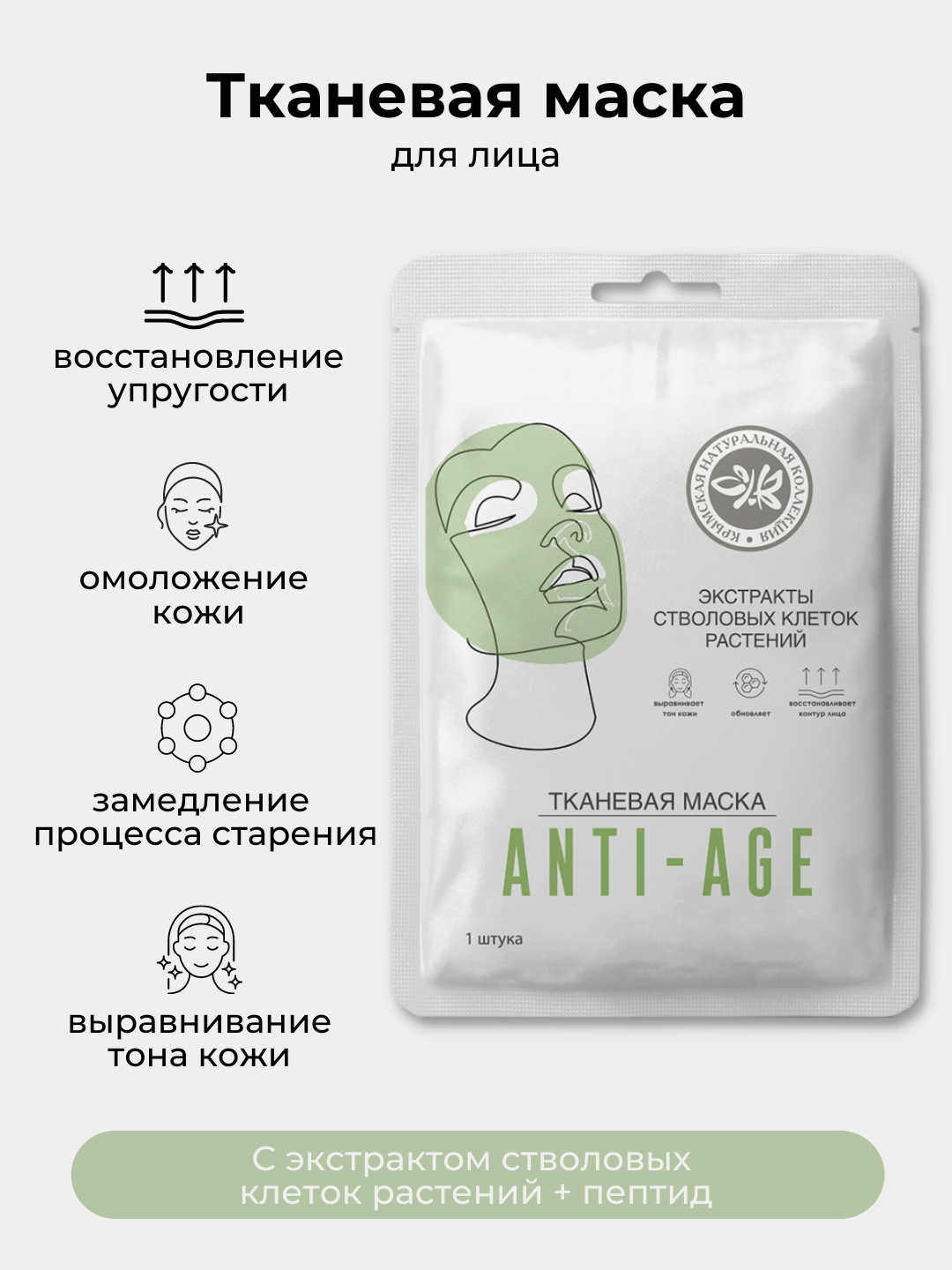 Тканевая маска LUXE ANTI-AGE пропитана эссенцией, обогащенной экстрактами стволовых клеток растений + пептид. Благодаря высокой концентрации активных веществ маска отлично насыщает кожу активными компонентами, которые омолаживают ткани и замедляют процессы старения. Маска способствует укреплению кожи, улучшению ее тонуса и уменьшению морщин. Придает коже ровный тон и сияние, восстанавливает упругость и эластичность кожи, восстанавливает контур лица.