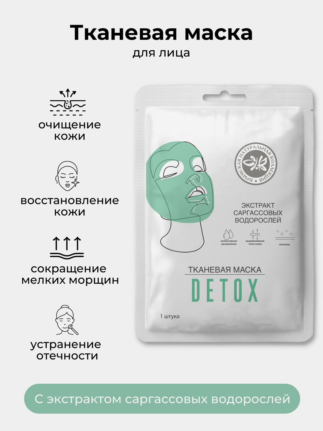 Тканевая маска LUXE DETOX пропитана эссенцией, обогащенной экстрактами морских водорослей. Благодаря высокой концентрации активных веществ маска отлично останавливает клеточное старение, активизирует работу собственной антиоксидантной системы кожи, восстанавливает энергетический обмен клеток, стимулирует синтез собственного коллагена, омолаживает кожу и разглаживает морщины, расслабляет мимические мышцы (миорелаксация).